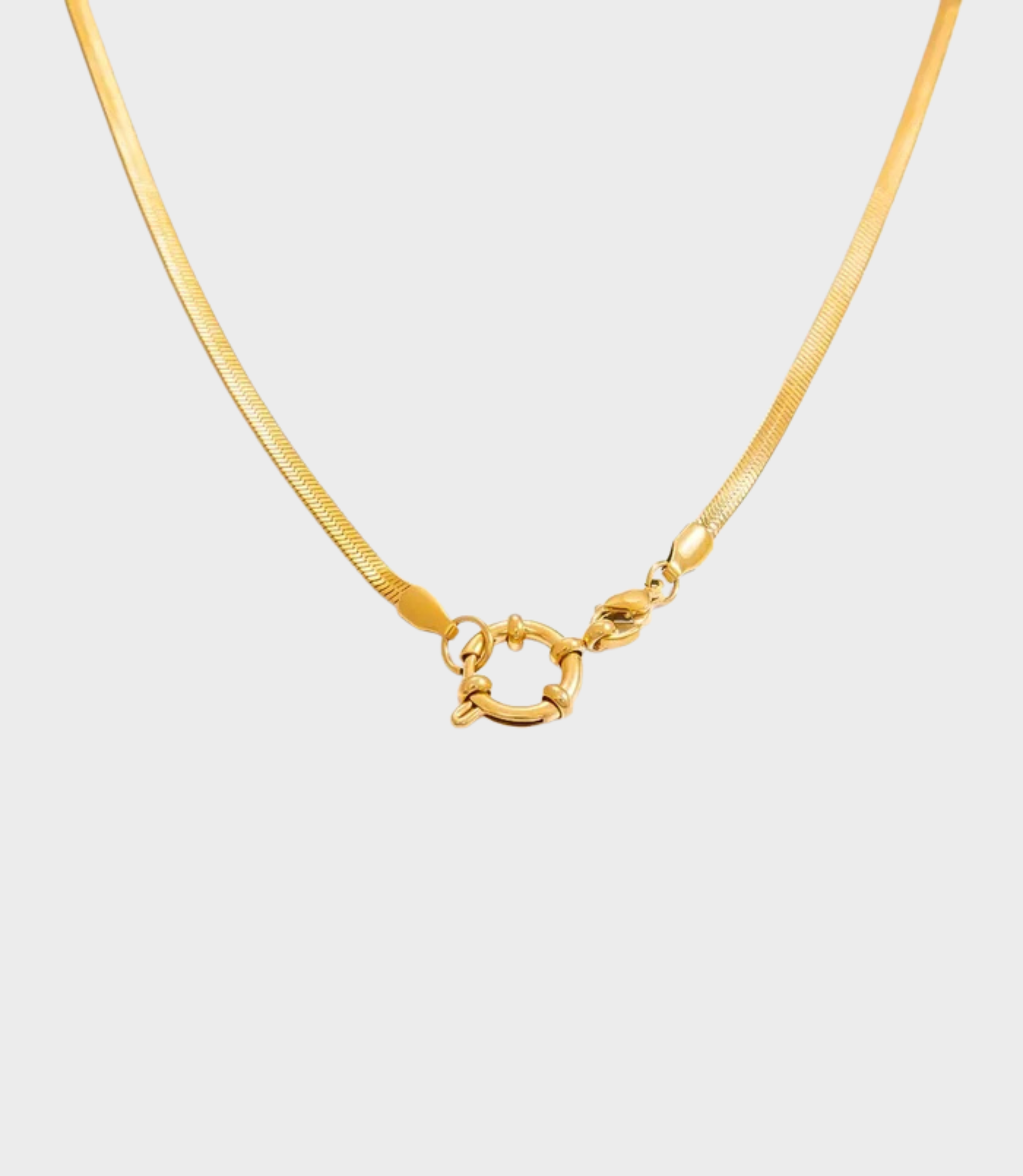 Collana in acciaio inox, placcata oro 18K, waterproof e nickel free. Design moderno con anello centrale: perfetta da sola o personalizzabile con ciondoli. Lunghezza: 40.5 cm