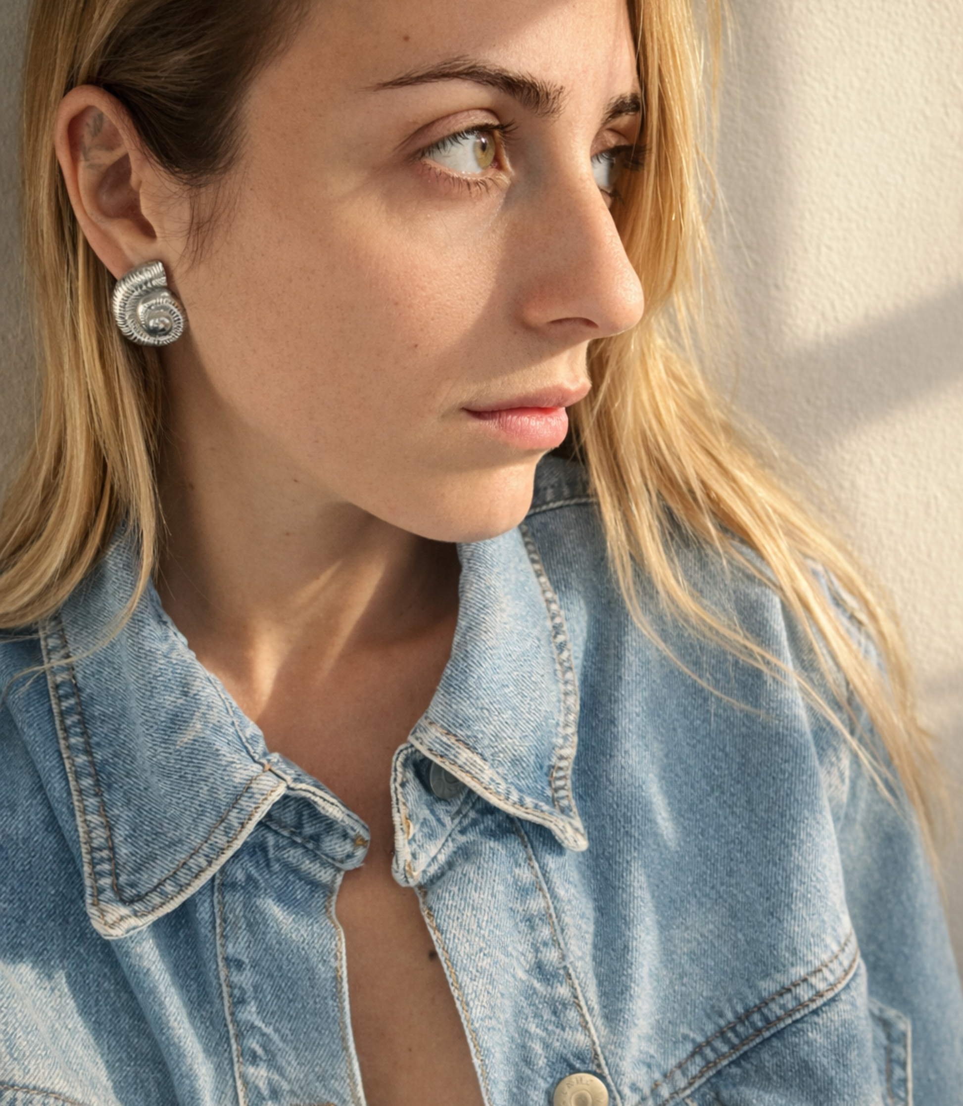 Orecchini in acciaio inox placcato oro 18K con simbolo a spirale, ispirati alla bellezza delle forme naturali. Luminosi, essenziali e ricchi di significato, sono pensati per accompagnarti ogni giorno con eleganza.