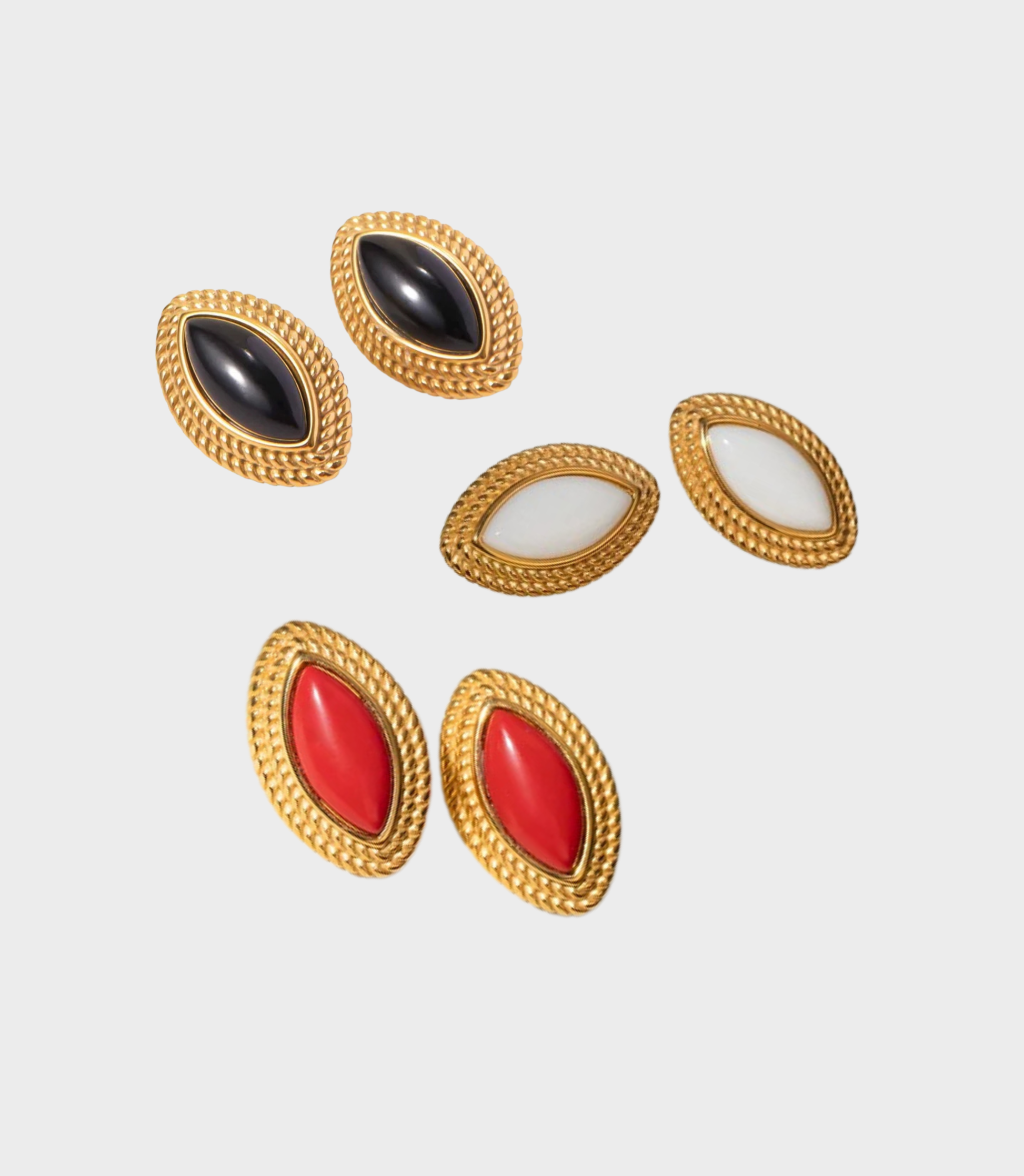 Orecchini bold a forma marquise in acciaio inox: waterproof, nickel free e super confortevoli. Un dettaglio elegante che illumina ogni outfit.